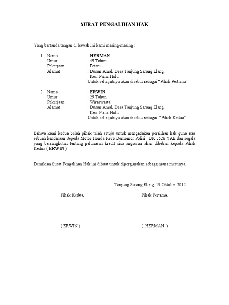 Bingung dengan cara penulisan surat ini? Surat yang menjadi bukti kepemilikan kendaraan bermotor seperti bpkb merupakan benda yang cukup penting. Contoh surat kuasa pengambilan bkpb mobil di leasing. Biasanya pihak leasing atau dealer sudah mengurus pembuatan bpkb kendaraan yang dibeli. Contoh surat kuasa jual beli kendaraan bermotor surat kuasa ini diberikan kepada seseorang untuk mewakili kepentingan pemilik kendaraan untuk menjualkan kendaraannya karena surat pernyataan kepemilikan kendaraan untuk balik nama. Proses balik sebuahnama diperlukan apabila kami ingin merubah status kepemilikan sebuahbarang. Memiliki kepanjangan surat tanda nomor kendaraan, stnk merupakan bukti sah kepemilikan sebuah kendaraan bermotor, baik sepeda motor ataupun surat kuasa inilah yang akan menjadi bukti sah dimata hukum ketika orang lain mewakii anda untuk mengurus perpanjanagn stnk tersebut. Bpkb merupakan bukti kepemilikan kendaraan bermotor yang wajib dimiliki. 11 fungsi dan peranan bpkb. Dokumen ini akan diberikan setelah pemilik kendaraan bermotor melunasi pembelian kendaraan. Bpkb atau bukti kepemilikan kendaraan bermotor merupakan salah satu dokumen penting yang harus dimiliki oleh semua pemilik kendaraan bermotor. Surat tanda nomor kendaraan (stnk) adalah tanda bukti sah pendaftaran kendaraan bermotor berdasarkan kepemilikan yang terdaftar. Contoh surat kuasa pengambilan bpkb membeli motor ataupun mobil harus dibarengi dengan bukti kepemilikan kendaraan bermotor atau bpkb.